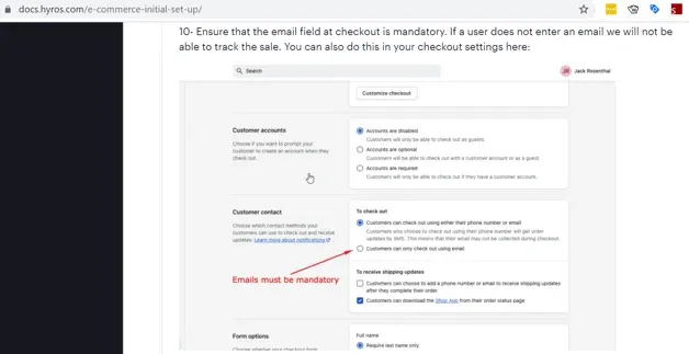 Because Hyros uses customers' email addresses to track and attribute conversions, you are required to force customers to checkout with their email addresses.